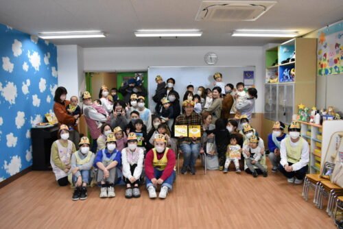 地元(広島市)に帰省するタイミングで、あなかれほいくえん福山の園児・保護者に向けて、読み聞かせと手遊びを披露してくださいました。