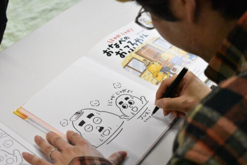最後は保護者の絵本にキャラクターとサインを記載していただきました。