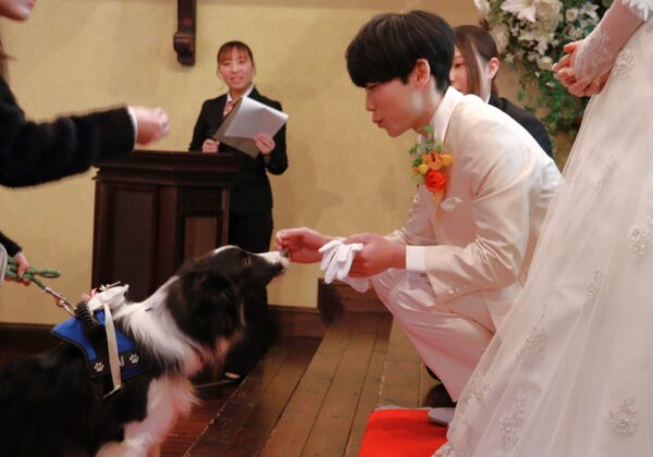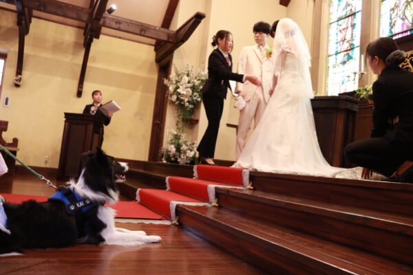 指輪を運んでくれたのは新婦役の友人のわんちゃんKAIくんです🐶