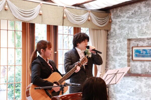 新婦のドレスの色当てクイズや、新郎のサプライズ歌唱など、参加者みんなで楽しめる演出も盛りだくさんの披露宴でした♪
