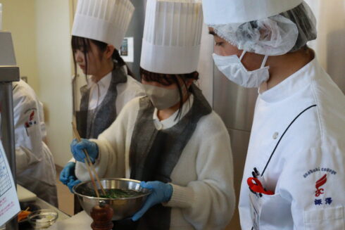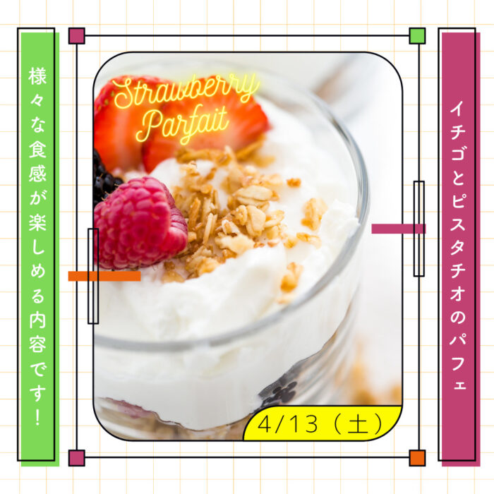 パティシエ・ベーカリー学科はイチゴと今はやりのピスタチオを使ったパフェ
