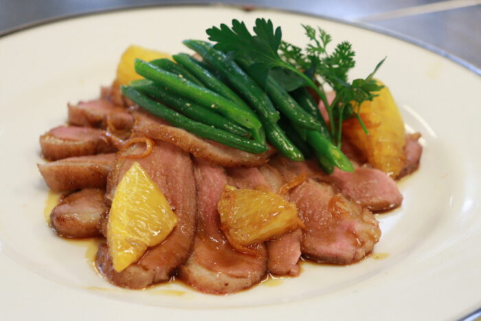 調理は鴨肉オレンジソース!
