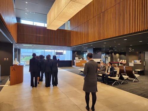 こちらは総合受付。病院とは思えない素敵な雰囲気に学生たちも感動していました。