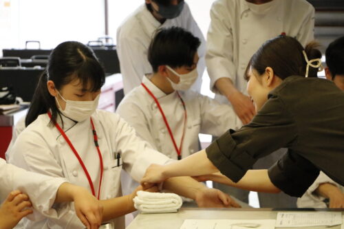 そして本日、パティシエ・ベーカリー学科の実習オリエンテーション。