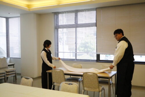 作るだけではなく、バンケットサービスやテーブルセッティングも学びます!