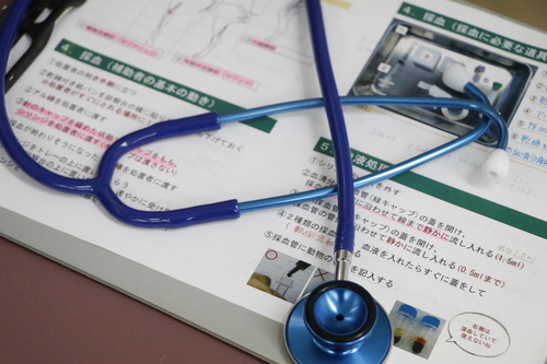 実習授業では、実際に動物病院で使われている検査機器や試薬を使います。