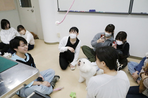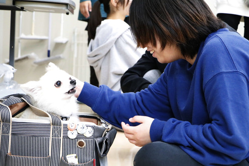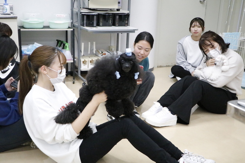 今日は動物看護総合学科1年生のスタッフアニマルふれあいタイムです。