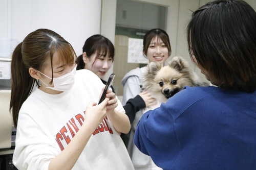 学生たちはさっそく抱っこしたり、写真を撮ったりと全力で楽しんでいました。