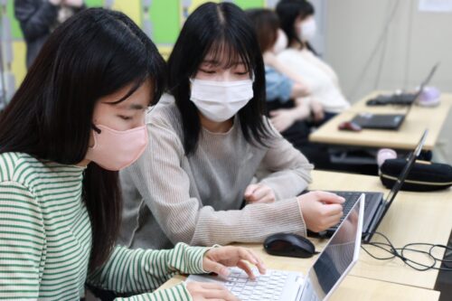 みんな教わったことをノートに書きこむのではなく、パソコンに打ち込んでいる風景も