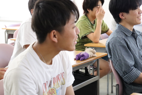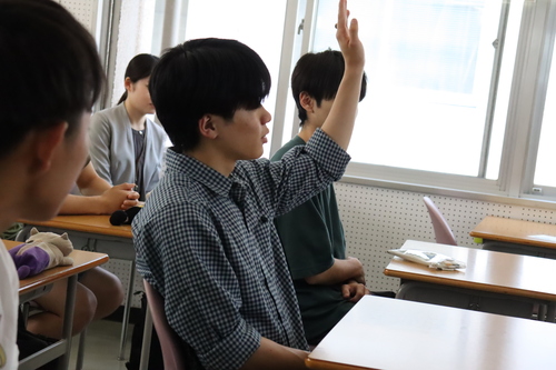 愛車の購入(いい車✨)についてもこっそり教えてくれた隊員さん。学生からも「おぉー!」と歓声が。