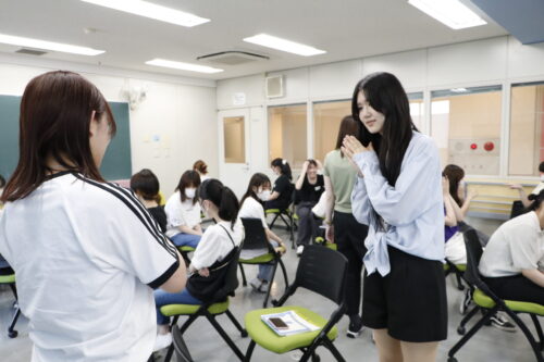 お題に沿ってジェスチャーを考え、一人ひとりジェスチャーでお題を伝えていきます…!