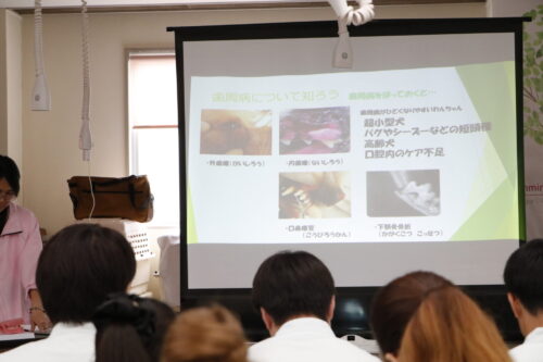 前半の講義では、犬の歯の仕組みや歯磨きのコツ、デンタルケア商品の使い方など、ペットの健康を守るための知識を身につけました。