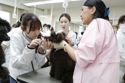 今日はトリマーをめざす動物健康美容学科の特別授業の日!