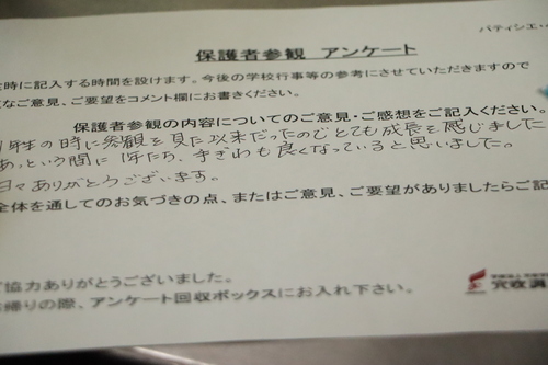 1年生になってすぐに、保護者参観を実施しましたが、