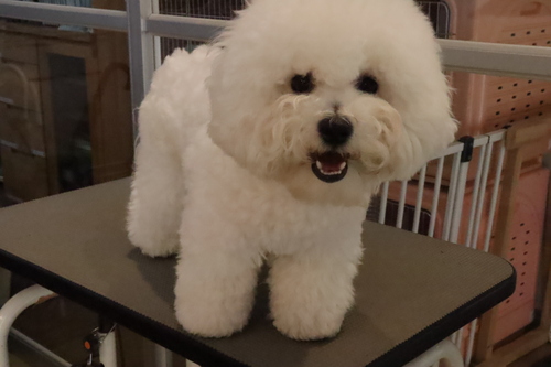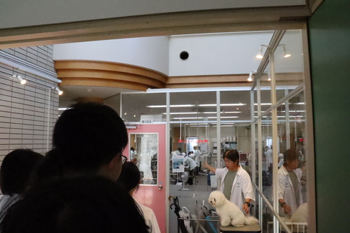 穴吹ビジネス専門学校に移動し、動物健康美容学科の教室の前ではスタッフアニマルのわたげがお出迎えしてくれました!