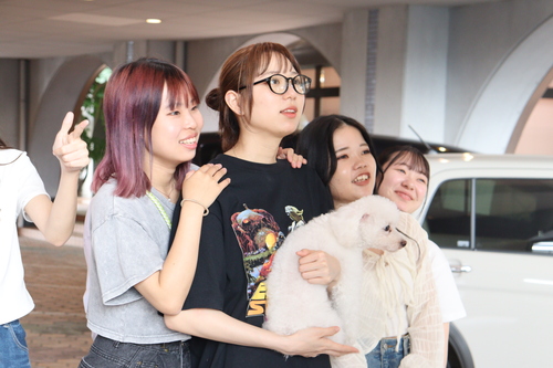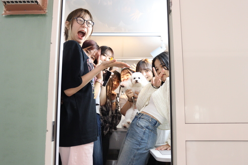 学生たちはトリミングカーの周りに集まって写真を撮ったりしながら、「意外と広くて作業もできそう」「バスタブが可愛い」などわいわいと楽しそうに見学していました。
