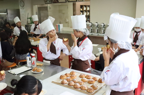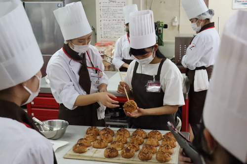 本日のオーキャンは「シュークリーム」です! まずは先生から、ポイントなどをしっかり教わります。 いざ実践していきます。先輩の学生スタッフと一緒にクリームを中に入れていく作業!上手にできるかな!? 作り終えた後は、仲良くみんなで試食!本日の体験授業は1年生が担当してくれました。学生生活にも少しずつ慣れてきて、楽しそうに参加者の皆さんとお話ししている姿が素敵でした☻ 在校生の生の声が聞けるのもオープンキャンパスのいいところ!次回もご参加お待ちしております!