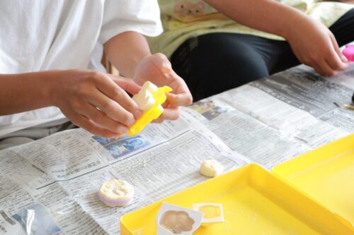 材料を混ぜ合わせて、乾かして形を固めると完成!