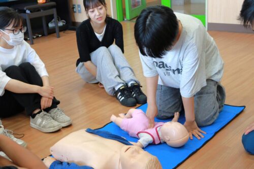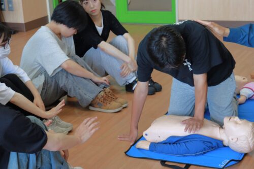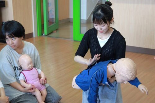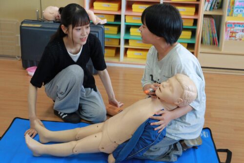 いざというときに対処ができるよう、心臓マッサージや人工呼吸などの方法を教えていただきました。