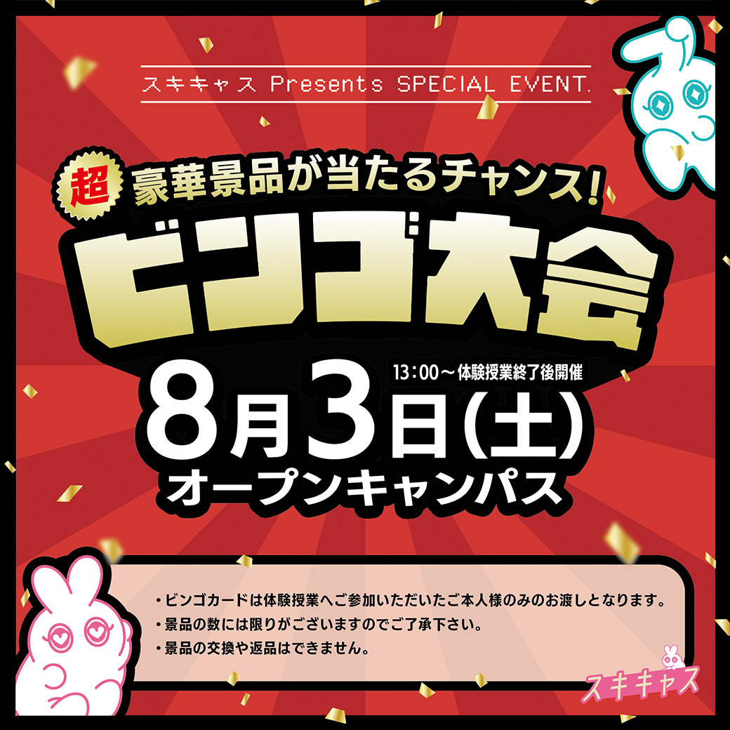 ・ビンゴカードは体験授業へご参加いただいたご本人様のみのお渡しとなります。