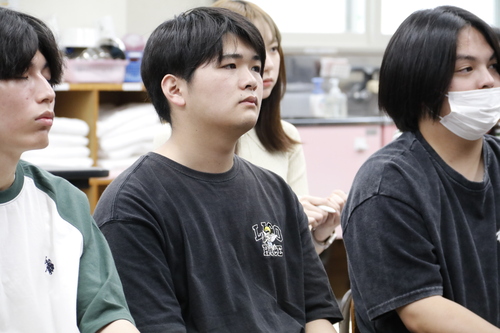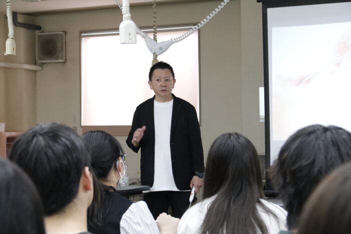 動物健康美容学科1年は、人の理美容シザーも扱うプロ、UTSUMIさんによる講演会です。