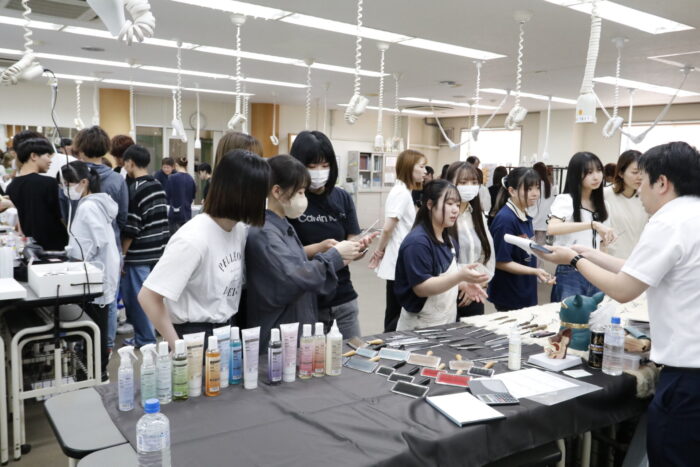 「アカデミックフェア」とはシザーや犬具メーカー様をお招きして、校内で講演や展示会を行っていただくイベントです。