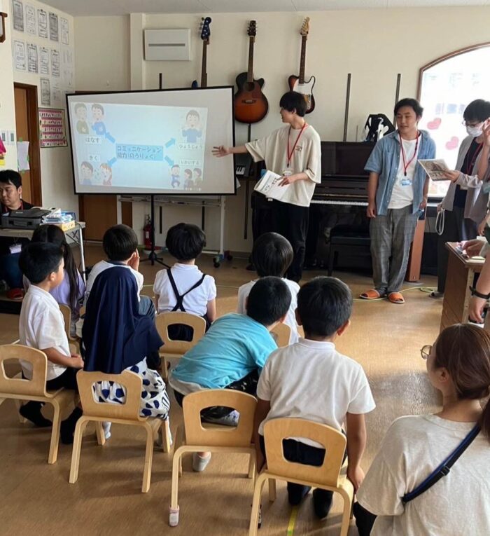 少し早めについた学生たちは子供たちと一緒におやつタイムを過ごした後、講座をスタート!