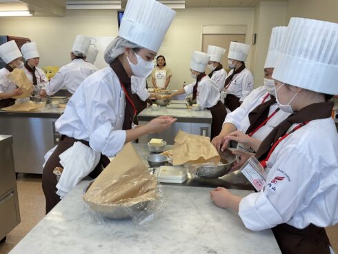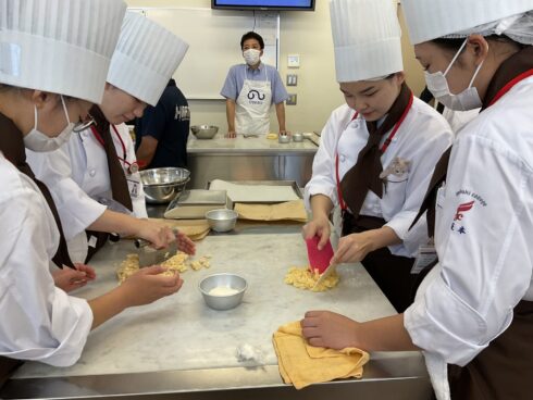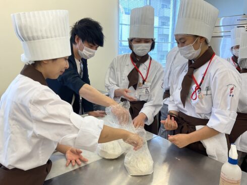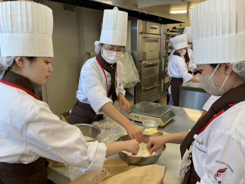 今回は、パン用の粉「金象」(強力粉)と菓子用の「パルティキュール」(薄力粉)の2種類で授業を展開していただきました。