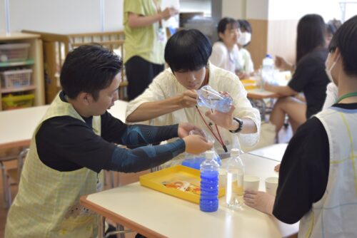 まずは、卒業生や在校生と一緒にスライムづくりです!