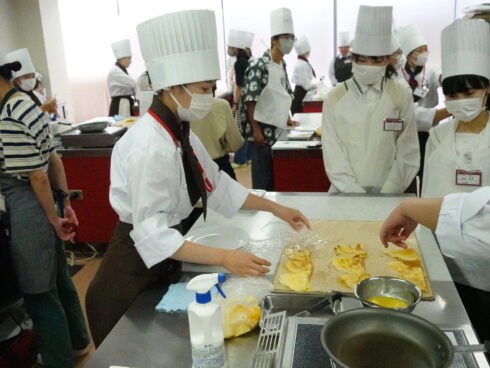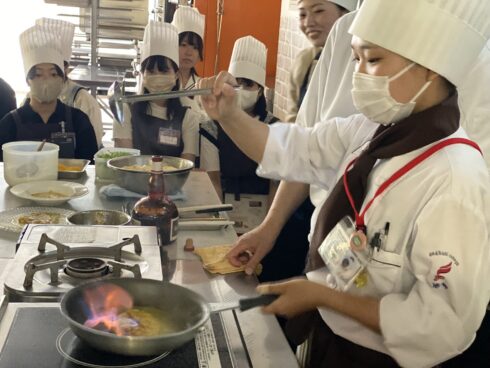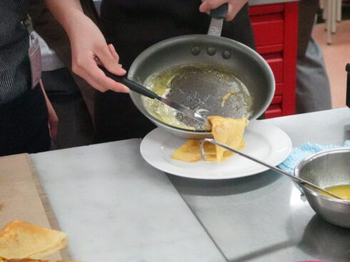 パティシエ・ベーカリー学科では、クレープシュゼットを作りました。