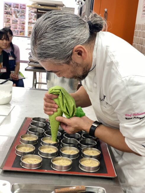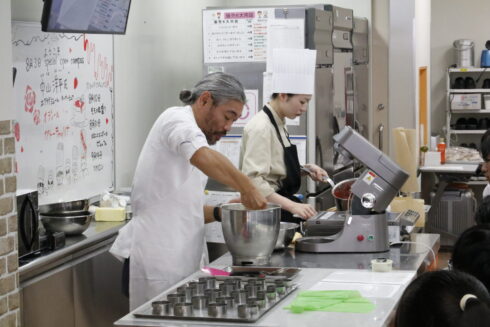 中山シェフのデモンストレーションをみせてもらいながら、お菓子作りに関すること・パティシエという仕事のことについてなど、たっぷりとお話をしていただきました。