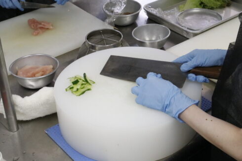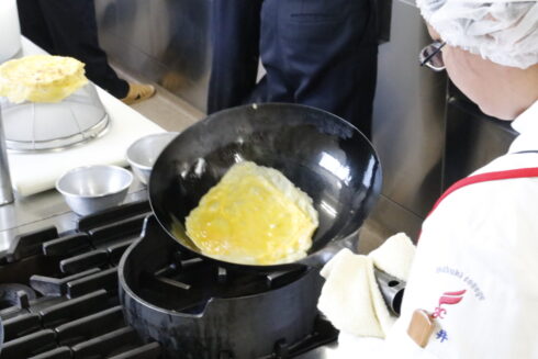 THE 冷麺!毎日暑いので、つるっとのど越しのいい冷麺を作りました! 夏休みということもあり、保護者の方を含めると30名近くご参加いただき、ありがとうございます! 普段あまり使わない中華包丁と中華まな板・中華鍋を使って、冷麺をつくりましたが、独特の形や重さに皆さんビックリされていました! 中国料理のプロが仕上げた、特性ゴマダレをかけて!暑い日に食べる五目冷麺は、一段と美味しかったみたいです! 次回は、西洋料理のバヴェットステーキ!(日本でいうと カイノミとかハラミの部分だそうです)ご参加お待ちしております!