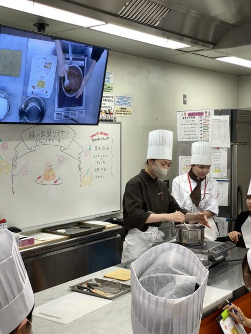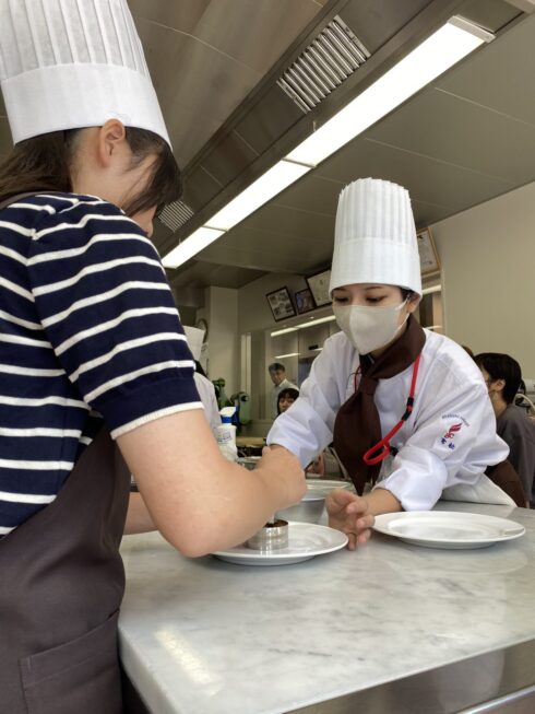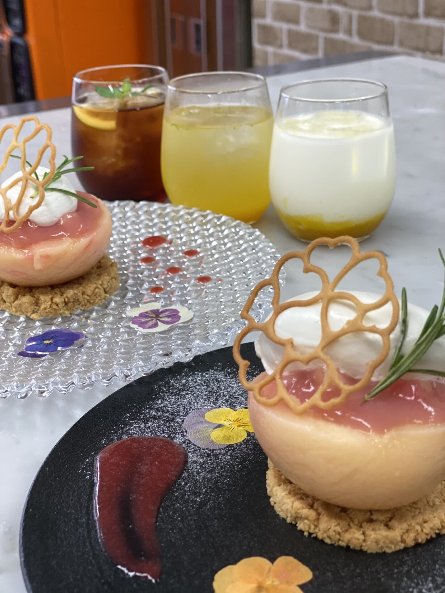 お盆休み前のオーキャン。桃を使ったアシェットデセール(皿盛りデザート)を作りました♪ カフェメニューということで、飲み物もついてます!保護者を含めると50名近く、参加をいただきました! 今日のアシェットデセール。先週来ていただいた、エクラデジュールの中山シェフに少しヒントをいただき、山本先生が仕上げたのです! エクラデジュールとパティシエ・ベーカリー学科のコラボと呼ばせてもらいましょう!味は言うまでもなくビックリするぐらい美味しかったみたいです! 8月ラストの31日(土)はデザートビュッフェです!!ご参加お待ちしております!