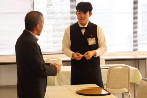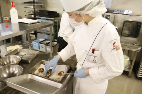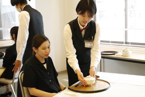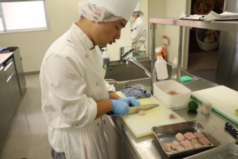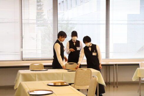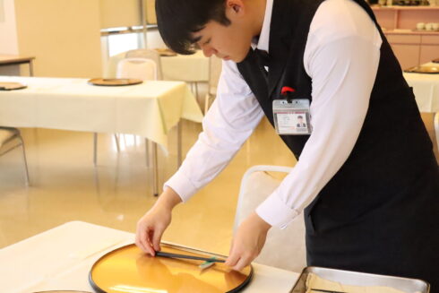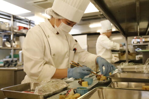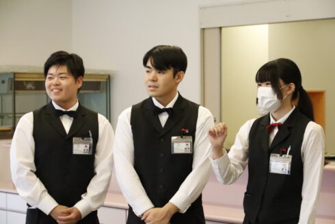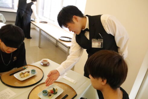 本日は!日本料理専攻チームの喫食実習です! メニューはコチラ! まずは準備です。 そのころ、サービス担当チームも打合せ中でした! いざ、喫食開始!先生からもアドバイスをもらいながら、スムーズに仕上げていきます! そして、サービス担当も丁寧に接客です。 料理も美味しかったようで、教職員も大満足! 次回は西洋料理専攻チームが担当です!果たして、どんなコース料理ですかね!?今から楽しみです!