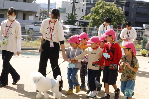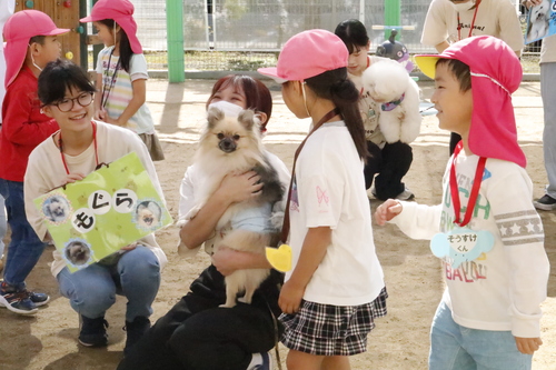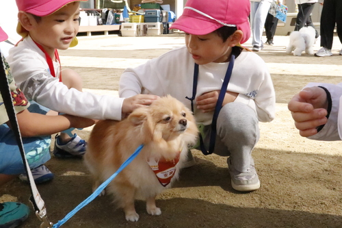 最初は少し怖がっていた園児さんたちも、可愛くて人懐こいスタッフ犬たちに夢中に!