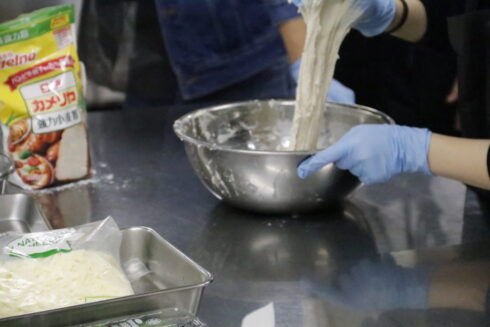 先生が生地から作成していく工程を教えてくれて、実際に生地をこねくり回してみました!