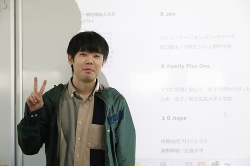 12/15(日)エストパルク広島で行われた本選では惜しくも入賞となりませんでしたが、大学生に混じって堂々たるプレゼンでした!