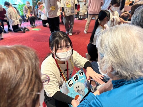 スタッフ犬たちの一芸披露で場が和んだ後は、ふれあいタイムです!