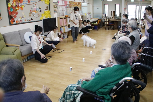 かわいいスタッフ犬たちの登場!利用者様は拍手でお出迎えしてくれました!