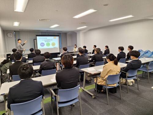 最後は卒業生が活躍する、株式会社マークスさんへ伺い、企業説明と見学をさせてもらいました!