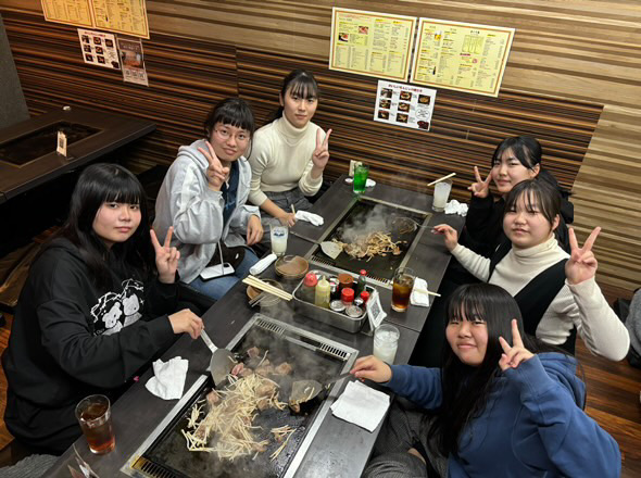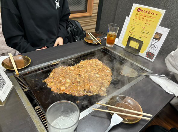 夜は、東京名物のもんじゃ焼きをみんなで食べました!