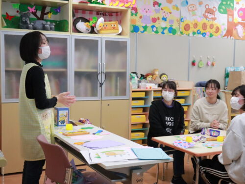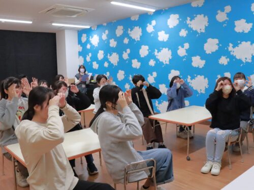 子ども役の学生も小さな子どもになりきってクラスメイトの模擬授業を受けましたよ😊