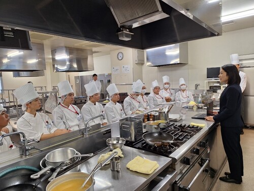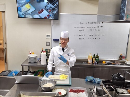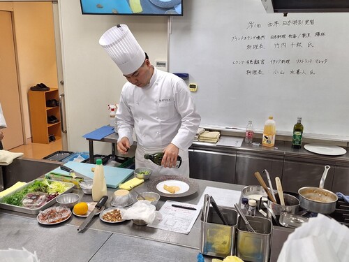 エクシブ有馬離宮から西洋料理 小山料理長にお越しいただき、高度調理学科1年生に向けた特別授業が開催されました。