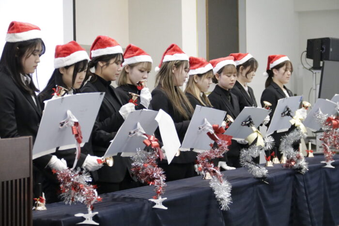 本日のオーキャンではブライダル・ホテル学科の学生がハンドベルを披露!