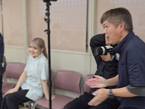 「こっちこっち‼ピューイ(指笛)」と声をかけ続ける先生。学生も先生も撮影を楽しんでいて和やかな雰囲気でした。