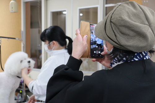 トリミング台のすぐそばで見守る保護者様も多くいらっしゃいました。