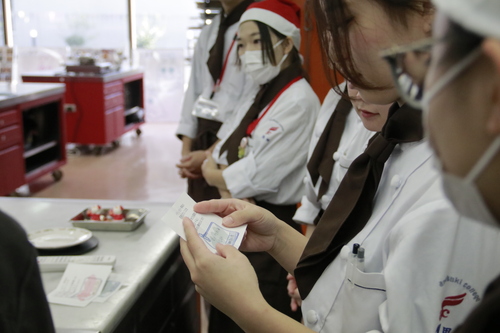 盛付は見事校内検定初級に合格している1年生が技術を披露!