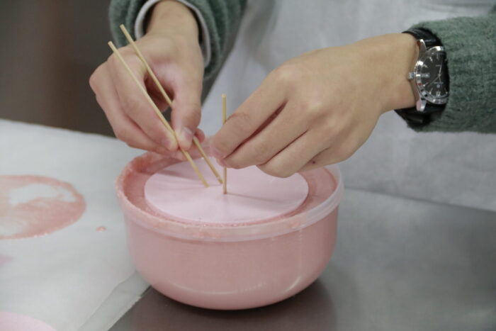 このケーキは逆さ仕込みといって、上になる部分から作っていく方法です!
