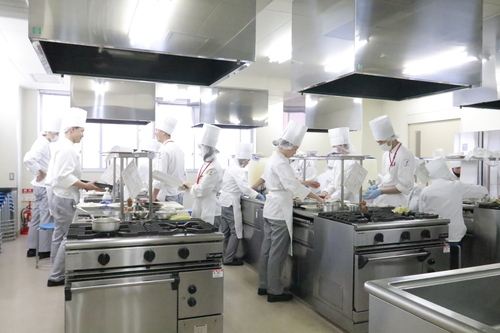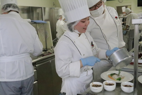 先日、高度調理学科2年生全員での実習が最後を迎えました。