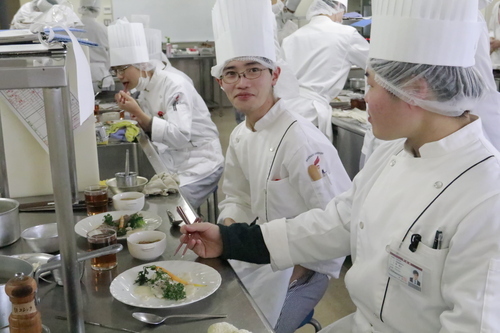 2年間を共に過ごした仲間との実習、楽しみながら調理する姿が素敵ですね✨